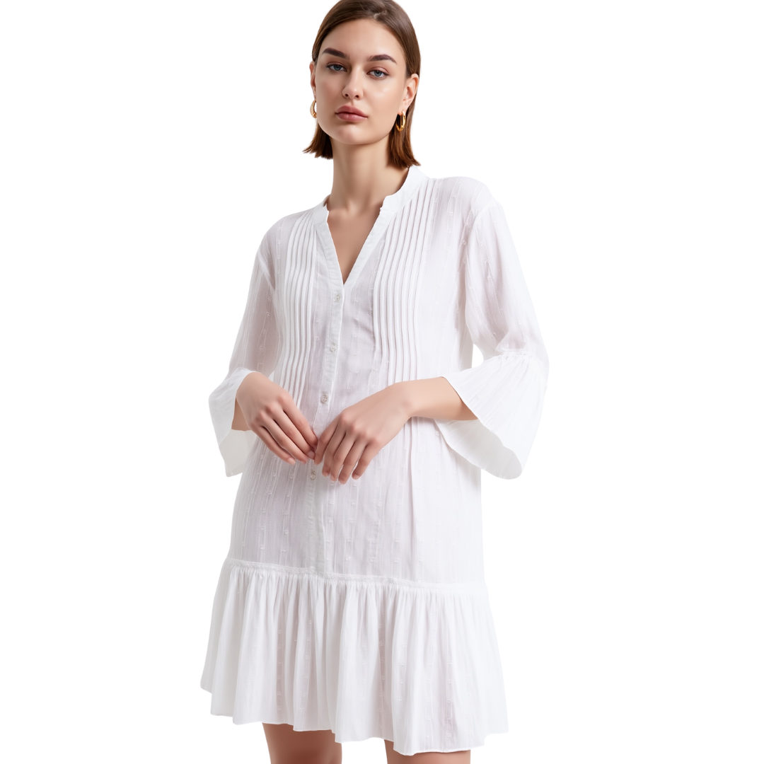 The BR11188 Textured White Mini Dress features a refined fabric texture that adds depth and visual interest to a classic silhouette. Its mini length offers a contemporary, youthful touch, making it ideal for both daytime events and evening occasions. Designed for a flattering fit, this dress pairs effortlessly with statement accessories or minimalist styles, providing versatile elegance in your wardrobe.